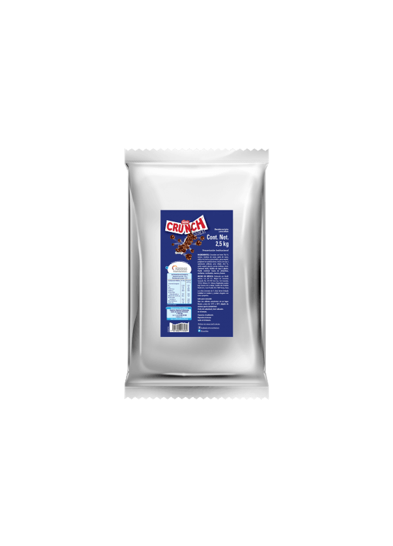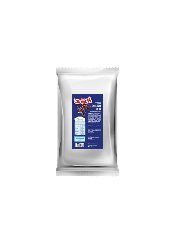 CRUNCH® Rocks que contiene 2.5 Kg de arroz inflado cubierto del chocolate que ya conoces ¡el topping perfecto!. Decora tus pasteles, bebidas y helados, rellena panes y sorprende a tus comensales con diferentes usos y aplicaciones.